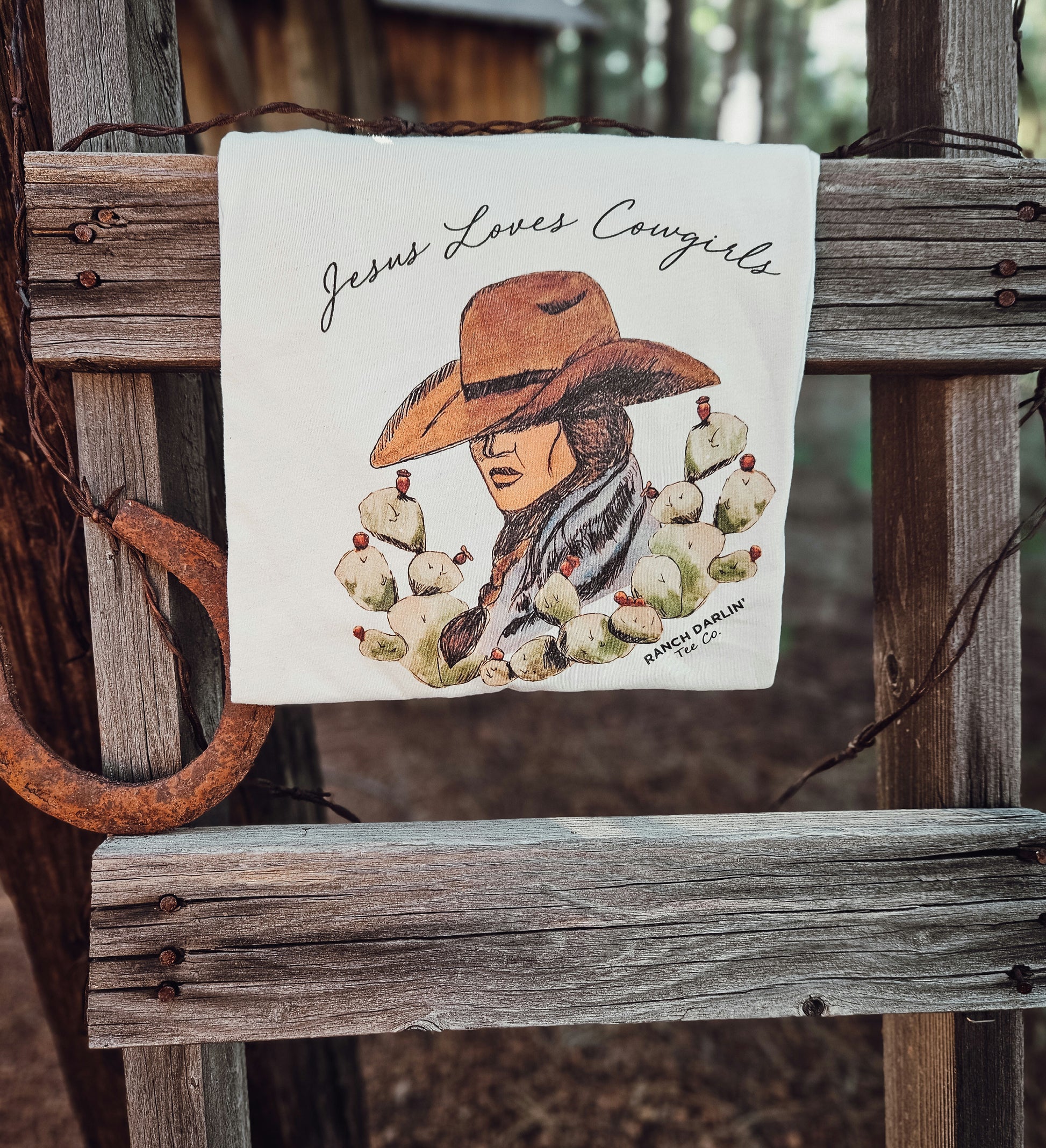 Jesus Loves Cowgirls Tee. Handpainted original design.